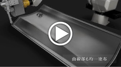 在引擎蓋上進行車體摺邊膠塗膠作業   可瞬間調整塗膠量,以配合機械手臂速度的變化,因此可在引擎蓋上進行均勻的線狀塗膠。