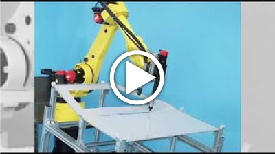 在車門的外側面板上進行高速點狀塗膠作業   進行高速且高精度的膠粘密封劑的塗膠作業。