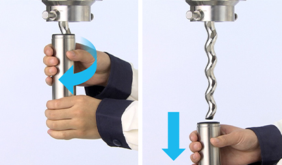 The rotor and stator (standard for 2NVDL15 and 2NVDL20) can be easily removed just by turning the stator slightly, allowing for simple disassembly and assembly.