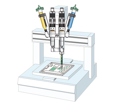 2液混合仕様ディスペンサー2液性接着剤を混合しながら高精度に吐出