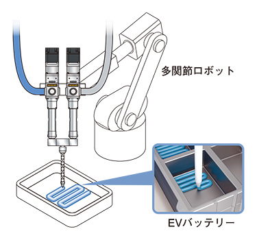 - EVのバッテリーユニットに2液性放熱ギャップフィラーを塗布