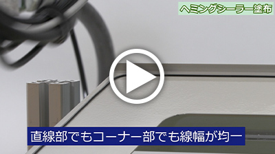 - 在車門的外側面板上進行線狀與點狀塗膠作業